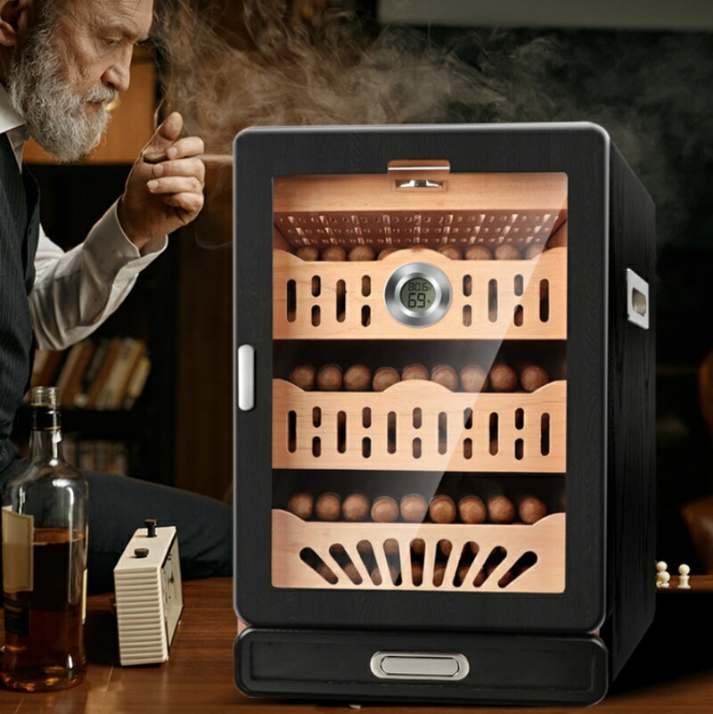 【10%OFFクーポン配布中】送料無料 葉巻保管庫 保温保湿 シガーキャビネット シガーケース 本革葉巻ケース シガー 葉巻 キャビネット 保湿 シングルドア 恒温 収納ボックス 葉巻 雪松木 木製シガレット 収納ケース 贈り物 プレゼント 父の日
