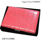 シガレットケース おしゃれ 本革 コスモス クロコ型押し ロング 100mm/70mm対応 レザー ピンク 革貼り 日本製 坪田パール 真鍮