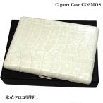 シガレットケース ロング 本革 コスモス クロコ型押し レザー ホワイト 100mm/70mm対応 日本製 坪田パール おしゃれ 真鍮 薄型