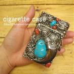 シガーケース タバコ(装飾片面)ターコイズ(ブルー)&Silver925ハンドメイド ナバホスタイル 喫煙具 ギフト プレゼント インディアン ベルト