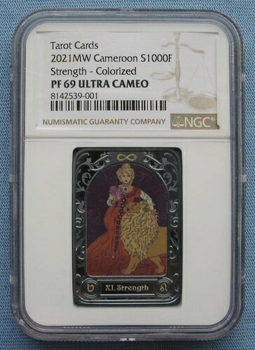 2021年 カメルーン 1000フラン タロットカード 強度XI ブラックプルーフ 28g シルバー NGC PF69