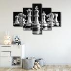 【並行輸入品】 フレーム入りウォールアート 5ピース 黒と白のチェス写真プリント キャンバスウォールアート ホームルーム装飾 チェスポスター