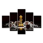 【並行輸入品】 ブラック&ホワイト キング 5ピース キャンバスアート 壁装飾 モダン 黒と白 キングとチェスの騎士 絵画 ウォールアート ホームゲームルーム