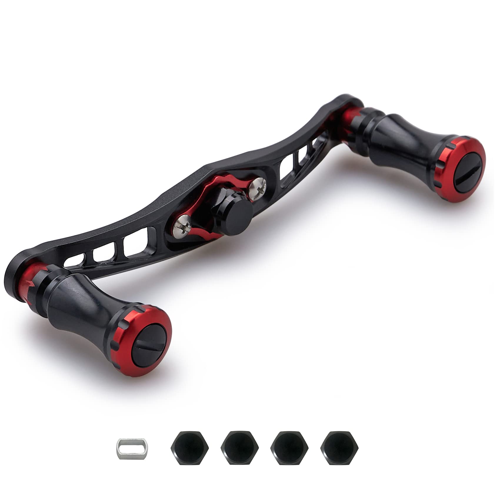 HEIGHTEN 92mm ベイト リール ハンドル シマノ ダイワ アブガルシア 通用 ベイトリール 用 Chess Series (92mm, ブラック(ハンドル)/ブラック&レッド(ノブ)) (317)