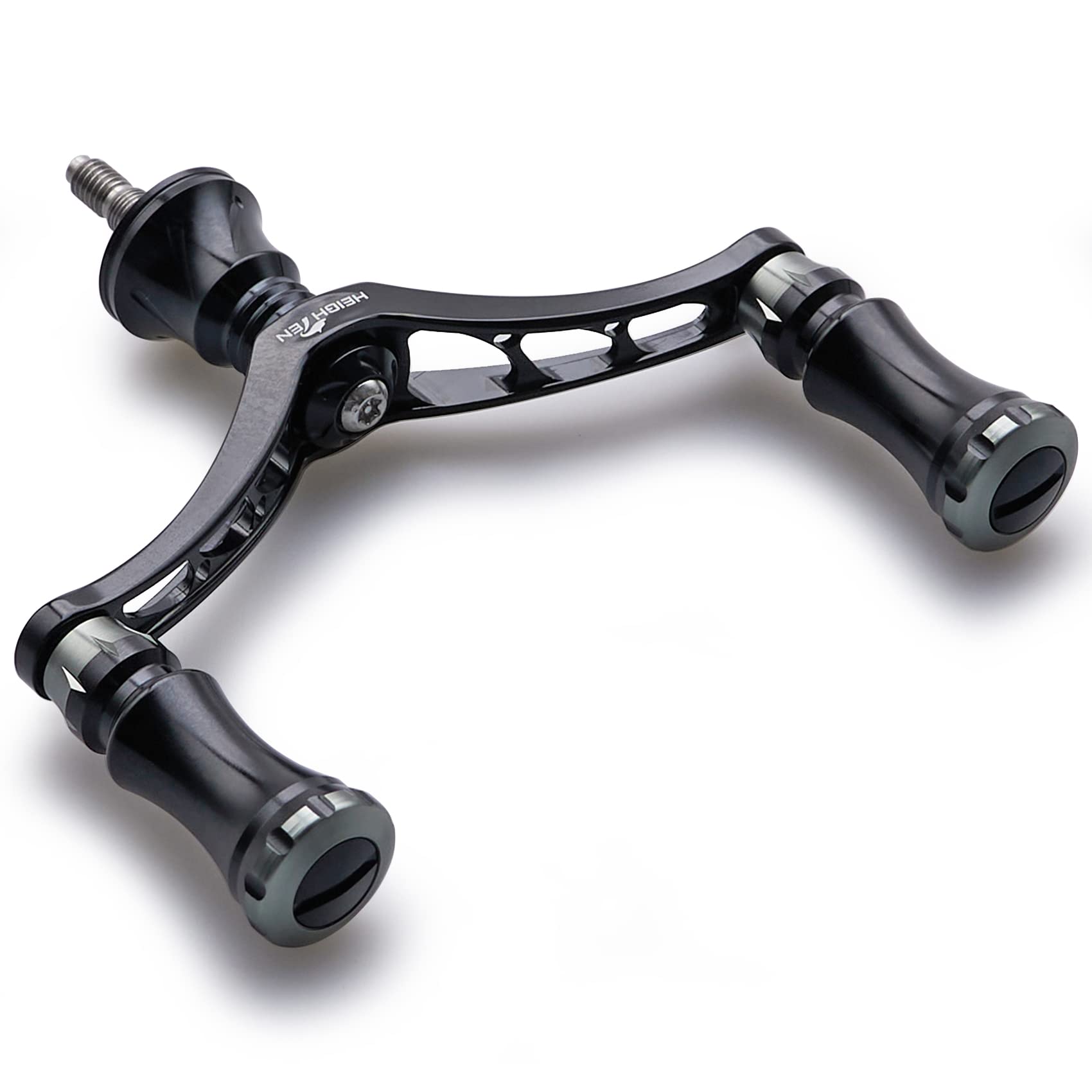 HEIGHTEN 80mm リール ハンドル 15mm ノブ 搭載 シマノ ダイワ 通用 スピニングリール用 Chess Series (ブラック&ガンメタル) (663)