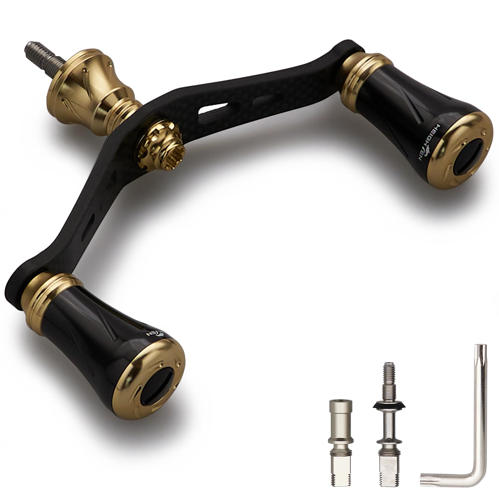 HEIGHTEN 90mm リール ハンドル シマノ ダイワ 通用 1.5K炭素布 カーボンクランクハンドル スピニングリール用 Chess Series (19mmノブ搭載 - ブラック&ゴールド) (0587)