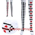 【値下げ】ハロウィンコスプレ ハロウィンコスチューム小物 ストッキング ニーハイソックス オーバーニーソックス トランプ柄 アリス クラウン