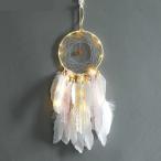 ドリームキャッチャー フェザーペンダント ウィンドチャイム オーナメント ライト 光る 手作り クラフト ハンドメイド インテリア 玄関 窓 ビーズ