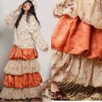 スカート バルーン ベージュ ボトムス マキシ オレンジ