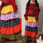 ボトムス チェック パッチワーク バルーンスカート マキシ カラフル