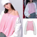 バイカラー トレーナー レザー スエット バルーン オフショルダー