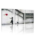 【並行輸入品】 Bansky Street グラフィティ キャンバス ウォールアート バルーン付き女の子 絵画アートプリント モダン ホームウォールデコ リビングルーム ベ
