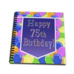 3dRose ガーデンフラッグ パープル バナー付きバルーン Happy 75th Birthday。
