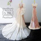 リボンドレス バックリボン キラキラ スパンコール マーメイドドレス 舞台 花嫁 演奏会 ピアノ 発表会