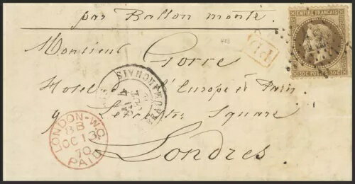 フランス 1870年9月29日 バルーンモンテ3回目の郵送