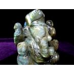 レインボーシラー ラブラドライト ガネーシャ 彫刻置物 重さ373g 繊細な天然石彫刻置物 くっきり美麗シラー 月と太陽を象徴する石 パワーストーン