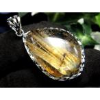 タイチン入り S級 タイチン ゴールドルチルクォーツ ペンダントトップ 重さ約10.6g 縦約23mm 超透明&煌めく金針 金運をもたらす石 Silver925 1点物