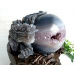 至高の龍神彫刻 笑口瑪瑙 玉持ち龍神 龍彫刻置物 重さ8028g 高さ250mm 専用木製台座付き メノウ アゲート ジオード 瑪瑙&水晶 福運をもたらす笑顔の石