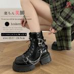 ショートブーツ レースアップブーツ 太ヒール レディース ハロウィン チェーン付き スタッズ ラウンドトゥ 厚底 編み上げブーツ 歩きやすい 韓国