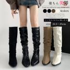 ロングブーツ レディース スエード PUレザー ジョッキーブーツ 太ヒール 膝丈 ナウシカブーツ くしゅくしゅ 厚底 ゆったり 韓国 通勤 通学 美脚 脚長 幅広 春夏