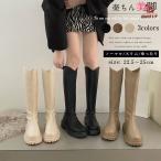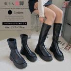 ブーツ レディース 厚底 ショートブーツ ロングブーツ ローヒール ジョッキーブーツ ラウンドトゥ PUレザー 膝丈 トラックソール 細見え 韓国 通勤 通学 美脚 脚