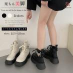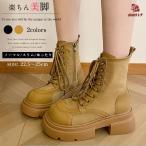 ショートブーツ レディース レースアップブーツ 編み上げブーツ 厚底 靴 太ヒール 歩きやすい 疲れない 韓国 通勤 美脚 脚長 幅広 おしゃれ PU ローヒール 春夏
