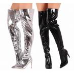レースクイーン 風 コスプレ ブーツ ハイヒール ニーハイ ロングブーツ シルバー ブラック 22.5cm 〜 26.5cm