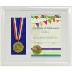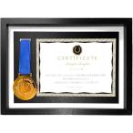 メダル 賞状 写真 額縁 フレーム 飾る ケース メダルかけ 表彰状 フォトフレーム タテ (メダル&写真 タテ, L版写真)