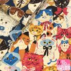 ちびプリ cute cat シーチング 猫 猫柄 ネコ ネコ柄 ねこ柄 にゃんこ リボン リボン柄 ドット シーチング生地 生地 布 数量3(30cm)から10cm単位 4327