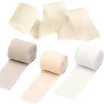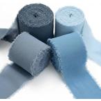 シフォンリボン 4個セット 5m 幅広 切りっぱなし フリンジコットンリボン 無地 布 ラッピングリボン (ブルー系, ブルー系)