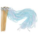 uxcell PATIKIL リボンスティックフェアリーワンド 25個 レースシルクフェアリースティックワンド 結婚式 ライトブルー ホワイト