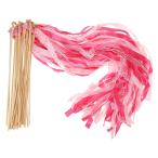 uxcell PATIKIL リボンスティックフェアリーワンド 25個 レースシルクフェアリースティックワンド 結婚式 フクシア ピンク