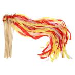 uxcell PATIKIL リボンスティックフェアリーワンド 25個 レースシルクフェアリースティックワンド 結婚式 フクシア オレンジ