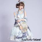 【8%OFFクーポン】ロリータ セットアップ シャツ スカート ヨーロッパ 長袖 ロング丈 Aライン Lolita 編み上げ 可愛い レディース コスチューム 仮装 cos ハロウィン 学園祭 文化祭 リボン かわいい パーティ イベント ファッション グリーン S M L d9099z7z7m7