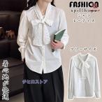 韓国 シャツ ホワイト レディース リボン インナー 春 夏 秋 レース ブラウス 上品 高校生 大学生 入学式 卒業式 オフィス 通勤 無地 仕事 長袖 スーツ シンプル