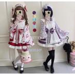 ワンピース 可愛い 袖あり 長袖 ガーリー フリル リボン パフスリーブ メイド 衣装