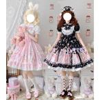ロリータ ワンピース 半袖 膝丈 ゴスロリ&ロリータドレス 裾フリル スクエア?ネック 紐クロス 蝶リボン 可愛い lolita ゴシック 暗黒系 ロリータファッション