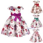 キッズ ドレス 子供 ワンピース 花柄 総柄 レトロ ワンピース フレンチスリーブ 半袖 フレア ワンピース 大きいリボン 女の子 パーティー 結婚式 お誕生日 お姫