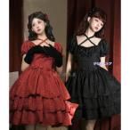 ロリータ ワンピース ゴスロリ ロリータ服 膝丈 ミドル丈 ジャンパースカート 可愛い JSK 裾フリル レース 蝶リボン 萌え萌え Lolitaドレス コスチューム レディ