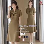 ワンピース リボン レディース 膝丈 フォーマル ビジネス 半袖 夏 秋 大きいサイズ 面接 オフィス 入学式 母の日 お宮参り ビジネス 卒園式 結婚式 入園式 卒業