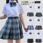 女子学生服 スクールシャツ 半袖 長袖Yシャツ リボン 制服スカート チェック柄 レディース セーラー服 制服 3点セット 女子高生 中学生 高校生
