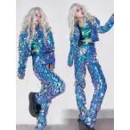 レディース JAZZ ジャズ ダンス 衣装 おしゃれ 未来 AI ロボット ダンスウエア 大きいスパンコール ガラス 長袖 ジャケット 長ズボン タンクトップ キラキラ 鏡