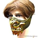 【ハロウィン】悪魔マスク 仮装 仮面 半面 コスプレ ゴースト 般若 鬼 お面( ゴールド)