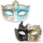 【ハロウィン】仮面 ベネチアンマスク 仮面舞踏会 お面 変装 仮装 ダンス 2個セット(ブラックxブラック・ゴールド)