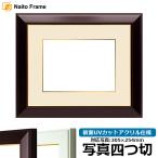 写真用額縁 No.3/ワイン 写真四つ切(305×254mm) 前面UVカットアクリル仕様 マット付き(金色細縁付き)