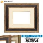 写真用額縁 8159 写真B4(364×257mm) Gブラウン/Sアイボリー 前面UVカットアクリル仕様 マット付き(金色/銀色細縁付き)