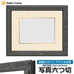 写真用額縁 LJ007/ブラック(A-60048) 写真六つ切(254×203mm) 前面UVカットアクリル仕様 マット付き(金色細縁付き) ラーソン・ジュール