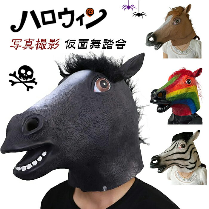 【期間限定・10%OFFクーポン】ハロウィン お面 動物 ハロウィン アニマルマスク 仮面舞踏会 仮面 写真撮影 小道具 馬かぶりもの 馬マスク 黒 コスプレ お面 アニマル 被り物 余興 馬 仮装 ラテックス パーティグッズ どっきり 怖いお面 ハロウィンやパーティー