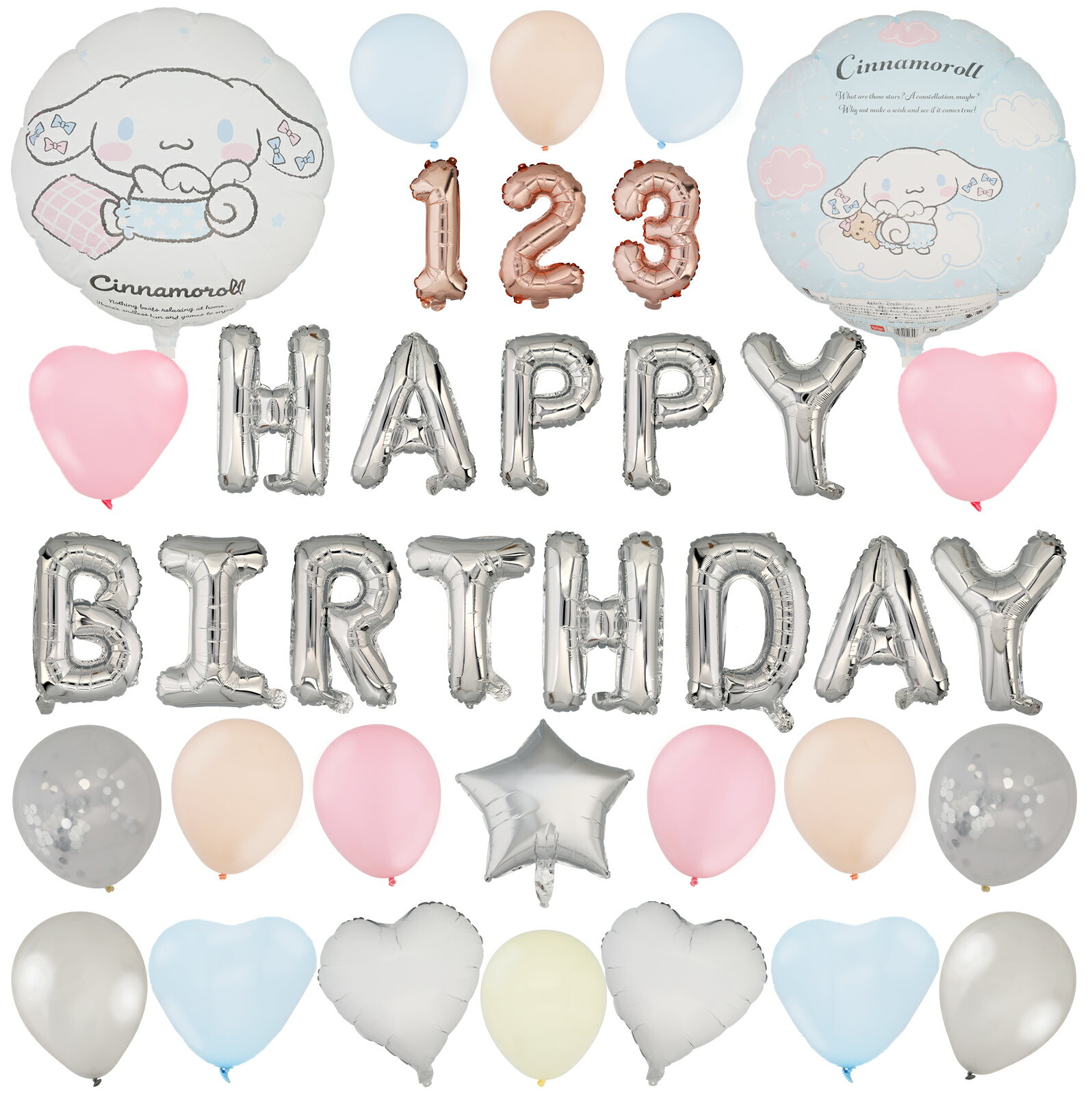 【 10%OFFクーポン対象 】 送料無料 シナモン バースデー バルーン セット 誕生日 飾り付け 両面使える シナモロール パーティー ガーランド パステル カラー テープ付き 1 2 3 おうち スタジオ フォト ブース 映える かわいい サンリオ キャラクター