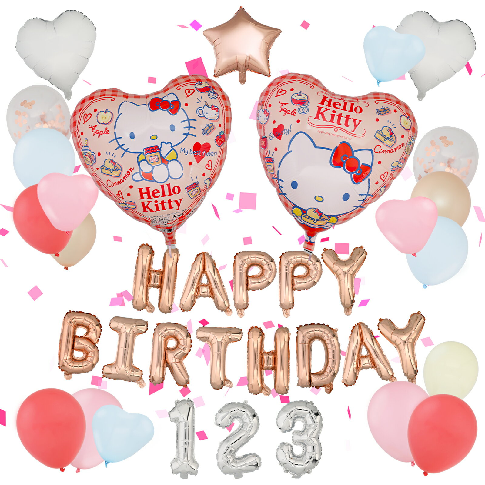 【 10%OFFクーポン対象 】 送料無料 キティ ちゃん バースデー バルーン セット 誕生日 飾り付け 風船 サンリオ キャラクター 人気 かわいい 女の子 お祝い ピンク 1 2 3 おうち スタジオ フォト ブース カメラ 写真 映え